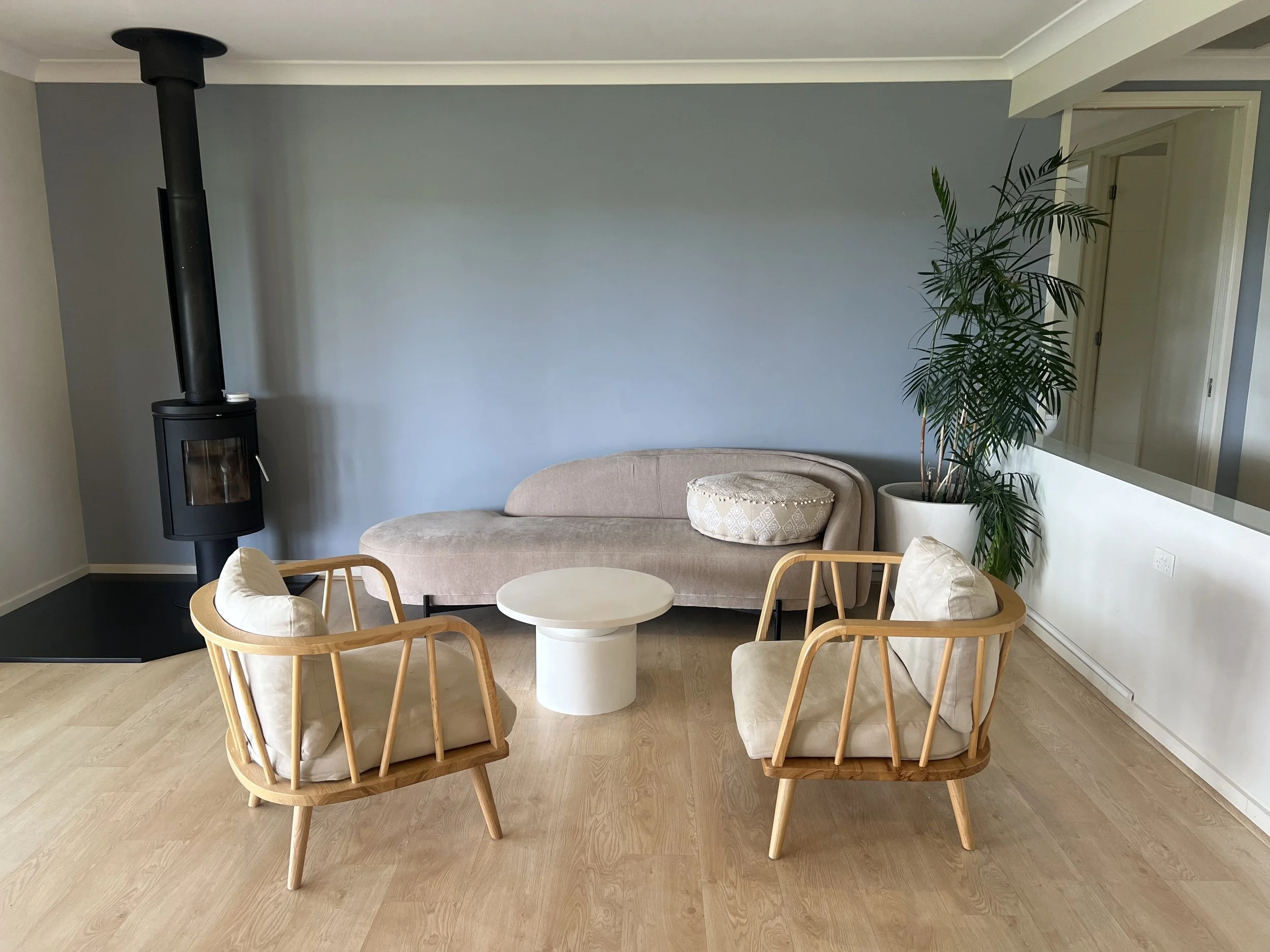 A serene and inviting home was transformed through a partial styling enhancement, focusing on key areas to create a cohesive and welcoming atmosphere. We blended modern coastal and Scandinavian design elements, using soft, neutral tones and natural textures to complement the home’s light-filled spaces and surrounding greenery.